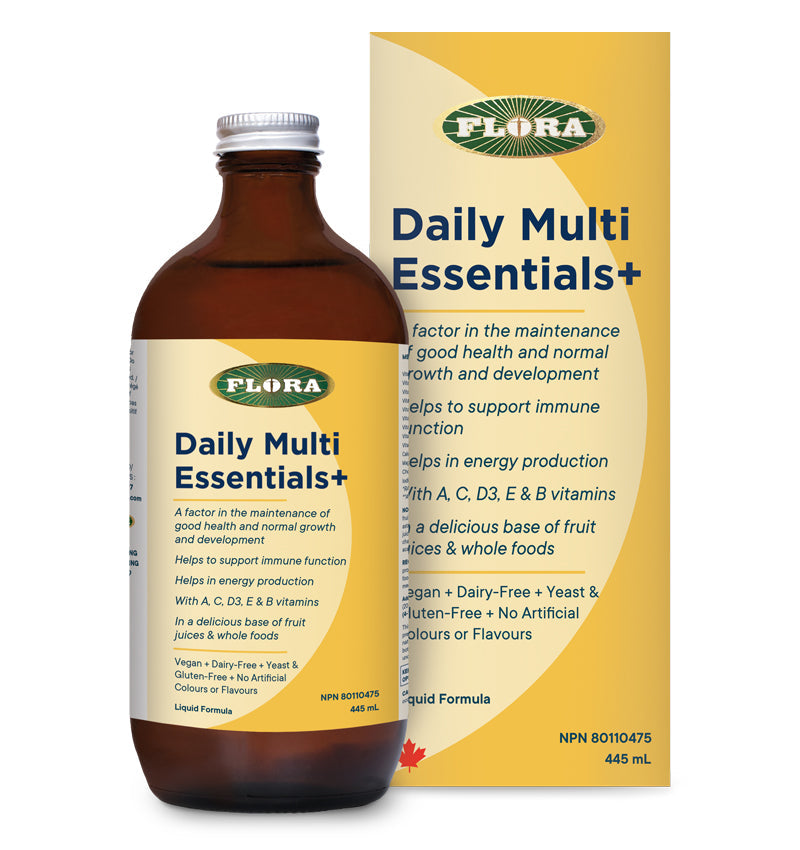 Flora’s Daily Multi Essentials+ are rich in antioxidants vitamins A, C and E, protecting cells from free radicals, and include a full range of B vitamins for energy production. This comprehensive vitamin and mineral formula also includes a full 400 IU of immune-supporting vitamin D, calcium, and an herbal blend of antioxidant astaxanthin, immune-supporting elderberry, digestion-promoting anise, calming chamomile, and rose hips for extra vitamin C.
